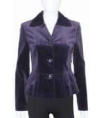 ¿Buscando una americana de mujer con un aire refinado? No busques más, la americana Marc Aurel de terciopelo morado de segunda mano es lo que estabas buscando.