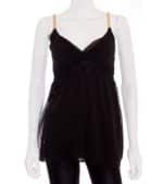 Top negro de mujer de gasa con tirantes trenzados color dorado. talla S.