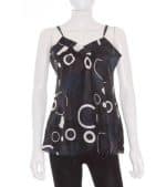 Top mujer Ichi de seda negra con círculos blanco y azul marino. Tiene tirantes con medida ajustable, talla M.