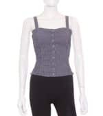 Top mujer Fórmul@ Joven de segunda mano, en azul vaquero con rayas en blanco, con botones automáticos en la parte frontal y elástico en los laterales, talla M.