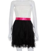 Este hermoso vestido de mujer de fiesta de Fórmula Joven de Palabra de Honor está hecho de suave gasa en color crema. Tiene una cintura marcada con un cinturón de moño en el mismo tono. El escote en forma de corazón con el generoso lazo de moño le agrega un toque moderno. Las mangas están adornadas con hombreras elegantes. El cierre de cremallera con el logotipo de Fórmula Joven en el reverso añade glamour al vestido.