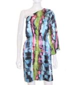 Vestido mujer Rise de raso con una sola manga, estampado multicolor, segunda mano.