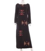 A la hora de comprar un vestido, deja que el Vestido vintage tribal de mujer de segunda mano de Ropasion te sorprenda. Este vestido largo en color negro con estampado tribal y bordados sigue la última tendencia y causará sensación en tus ocasiones especiales.